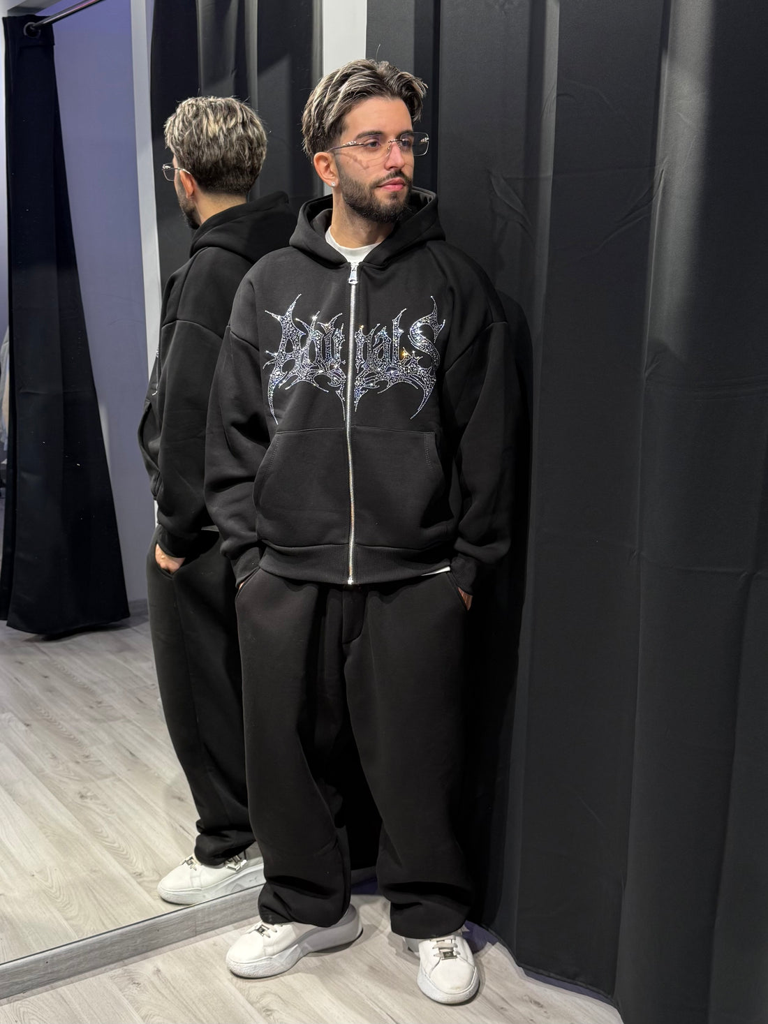 Tuta completa in tessuto premium con felpa full zip impreziosita dalla scritta “Animals” in brillantinato...