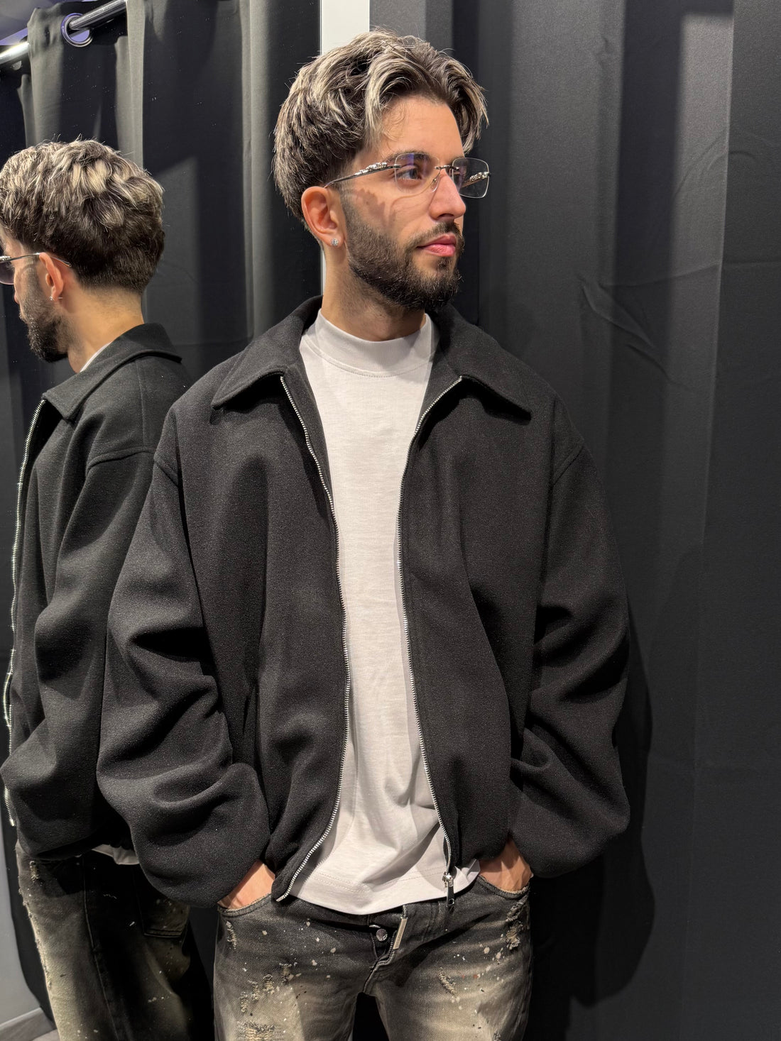 Giacca in lana cotta premium con zip frontale e colletto classico: il mix perfetto tra...