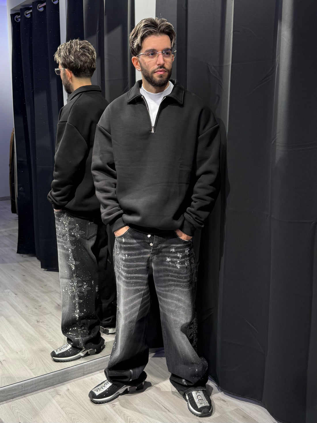 Felpa streetwear con stampa frontale di denti effetto brillantinato. Design audace e luminoso, perfetto per...
