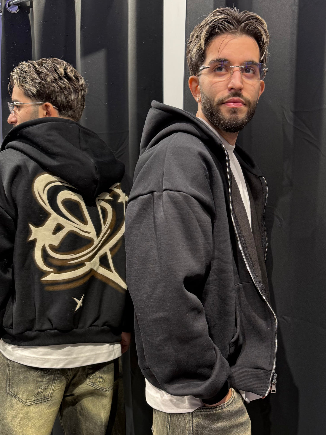 Aggiungi fuoco al tuo outfit con la nostra felpa zip frontale dallo stile deciso e...