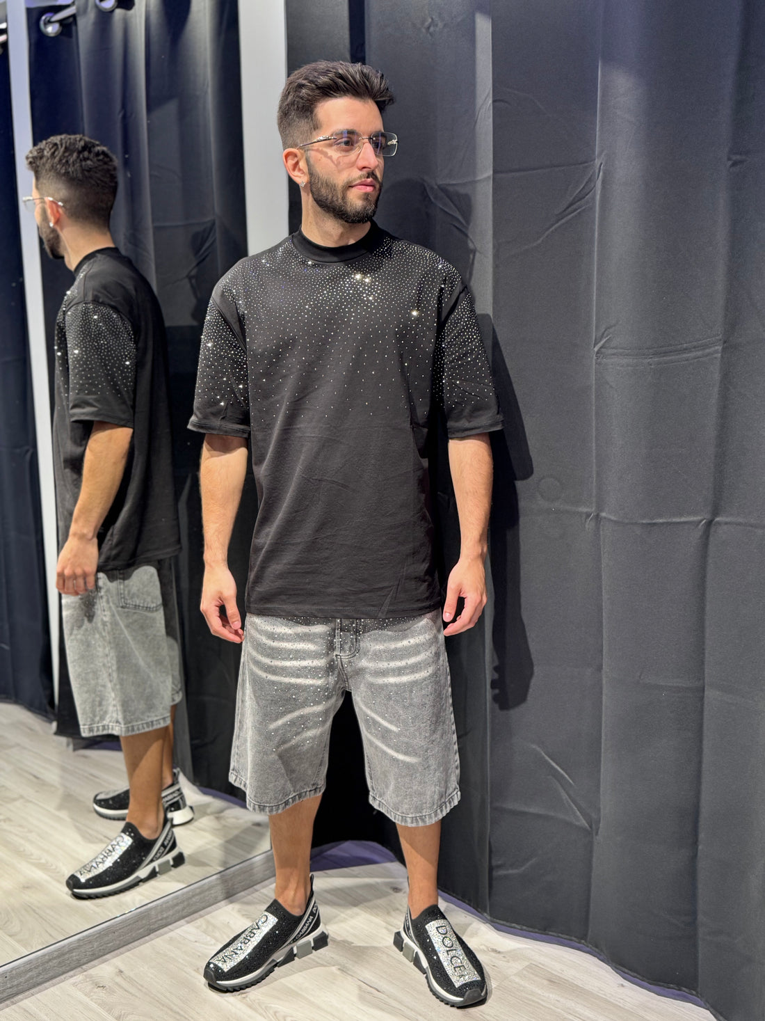 L’iconica t-shirt streetwear, vestibilità relaxed e dettagli glitter che riflettono ogni luce.Perfetta per chi vuole...