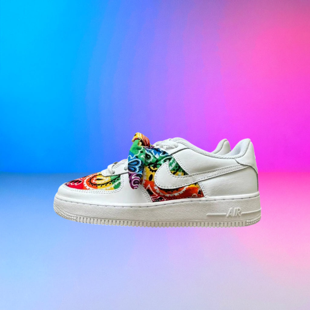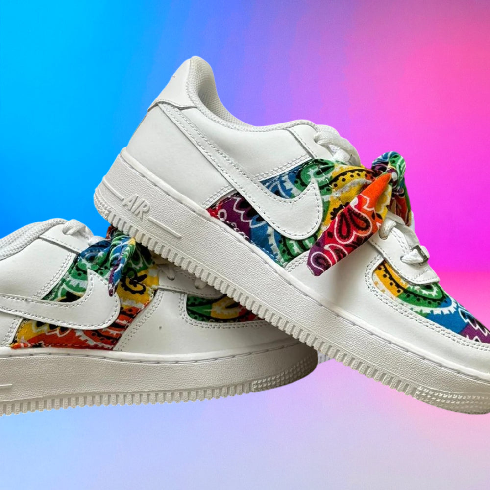 Questa sneaker parte da una base iconica — la Nike Air Force — e viene customizzata interamente a mano, con dettagli unici e lavorazioni artigianali che rendono ogni scarpa diversa da qualsiasi altra.