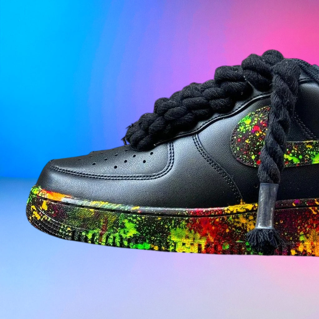 Questa sneaker parte da una base iconica — la Nike Air Force — e viene customizzata interamente a mano, con dettagli unici e lavorazioni artigianali che rendono ogni scarpa diversa da qualsiasi altra.