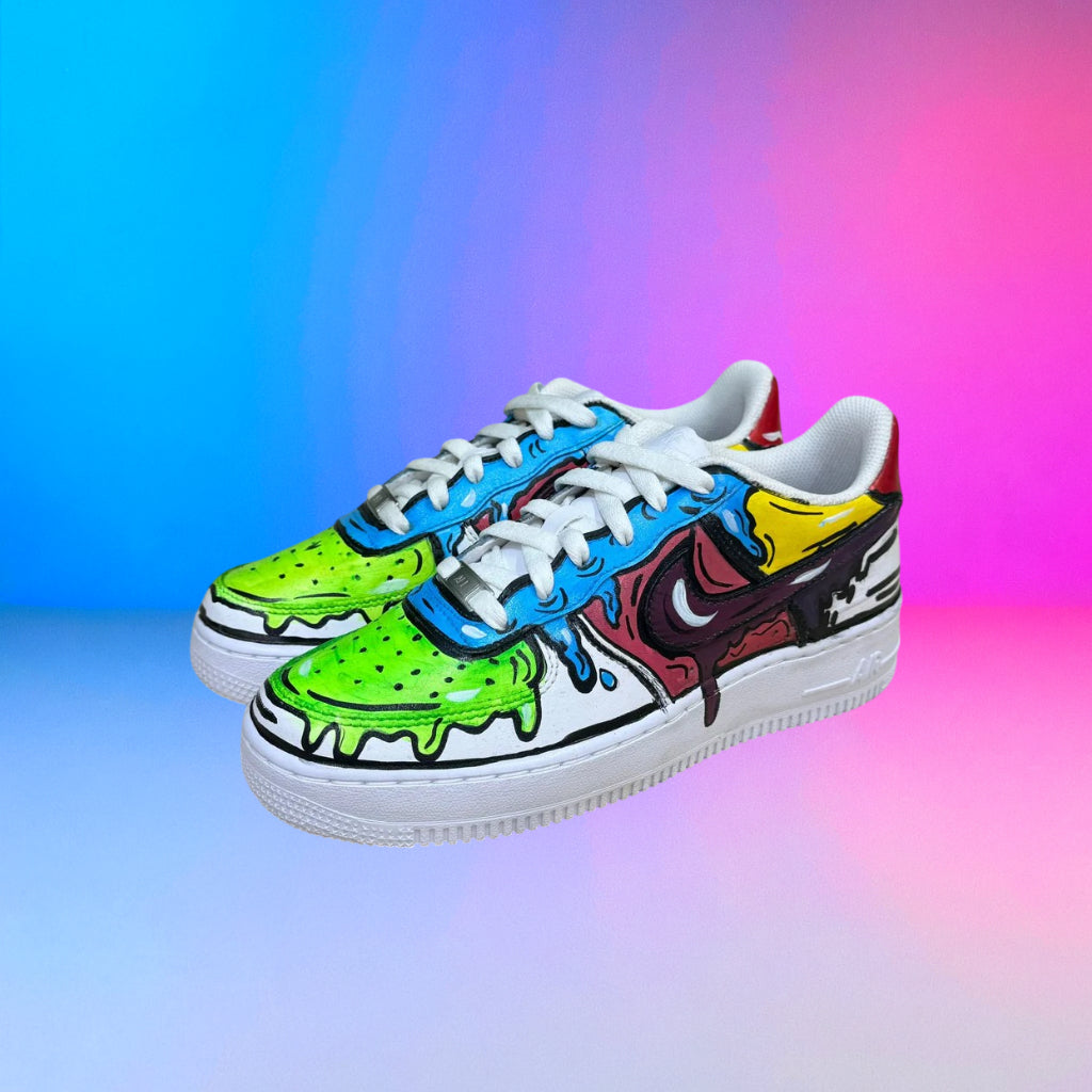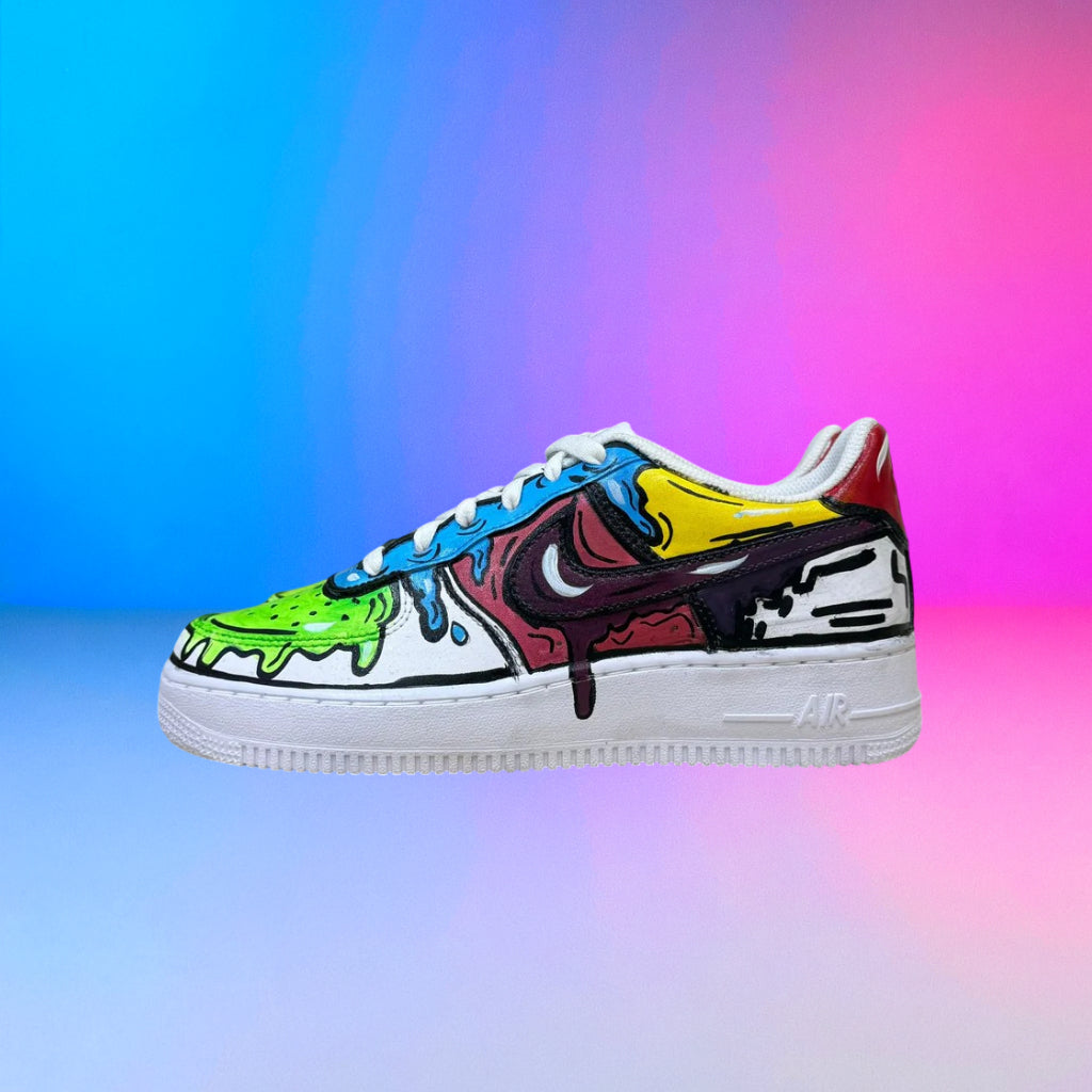 Questa sneaker parte da una base iconica — la Nike Air Force — e viene customizzata interamente a mano, con dettagli unici e lavorazioni artigianali che rendono ogni scarpa diversa da qualsiasi altra.