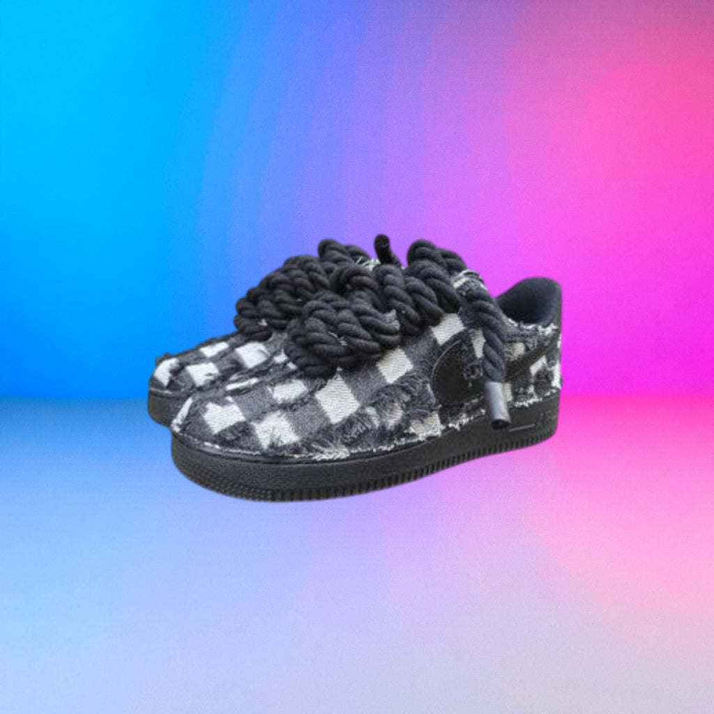 Questa sneaker parte da una base iconica — la Nike Air Force — e viene customizzata interamente a mano, con dettagli unici e lavorazioni artigianali che rendono ogni scarpa diversa da qualsiasi altra.