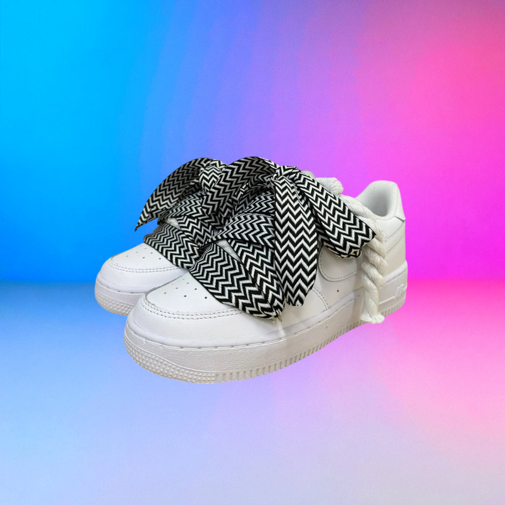 Questa sneaker parte da una base iconica — la Nike Air Force — e viene customizzata interamente a mano, con dettagli unici e lavorazioni artigianali che rendono ogni scarpa diversa da qualsiasi altra.