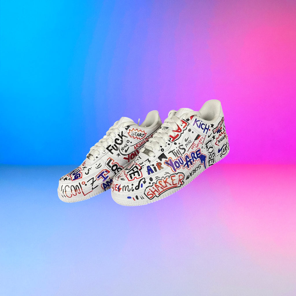 Questa sneaker parte da una base iconica — la Nike Air Force — e viene customizzata interamente a mano, con dettagli unici e lavorazioni artigianali che rendono ogni scarpa diversa da qualsiasi altra.