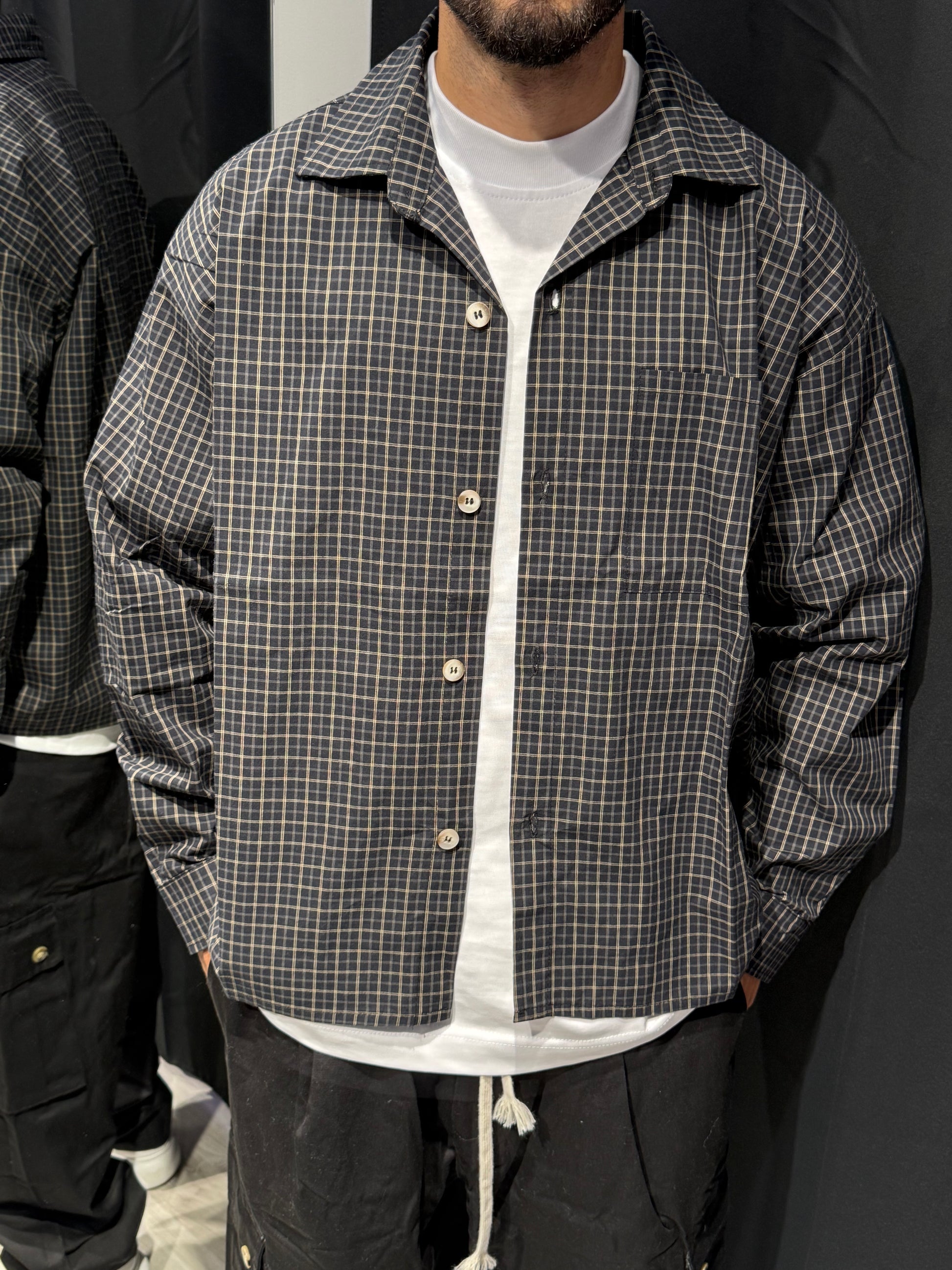 Camicia nera ultra leggera con raffinate rifiniture beige, perfetta per un look streetwear fresco e versatile. Ideale da indossare sopra una t-shirt per uno stile casual ma curato.