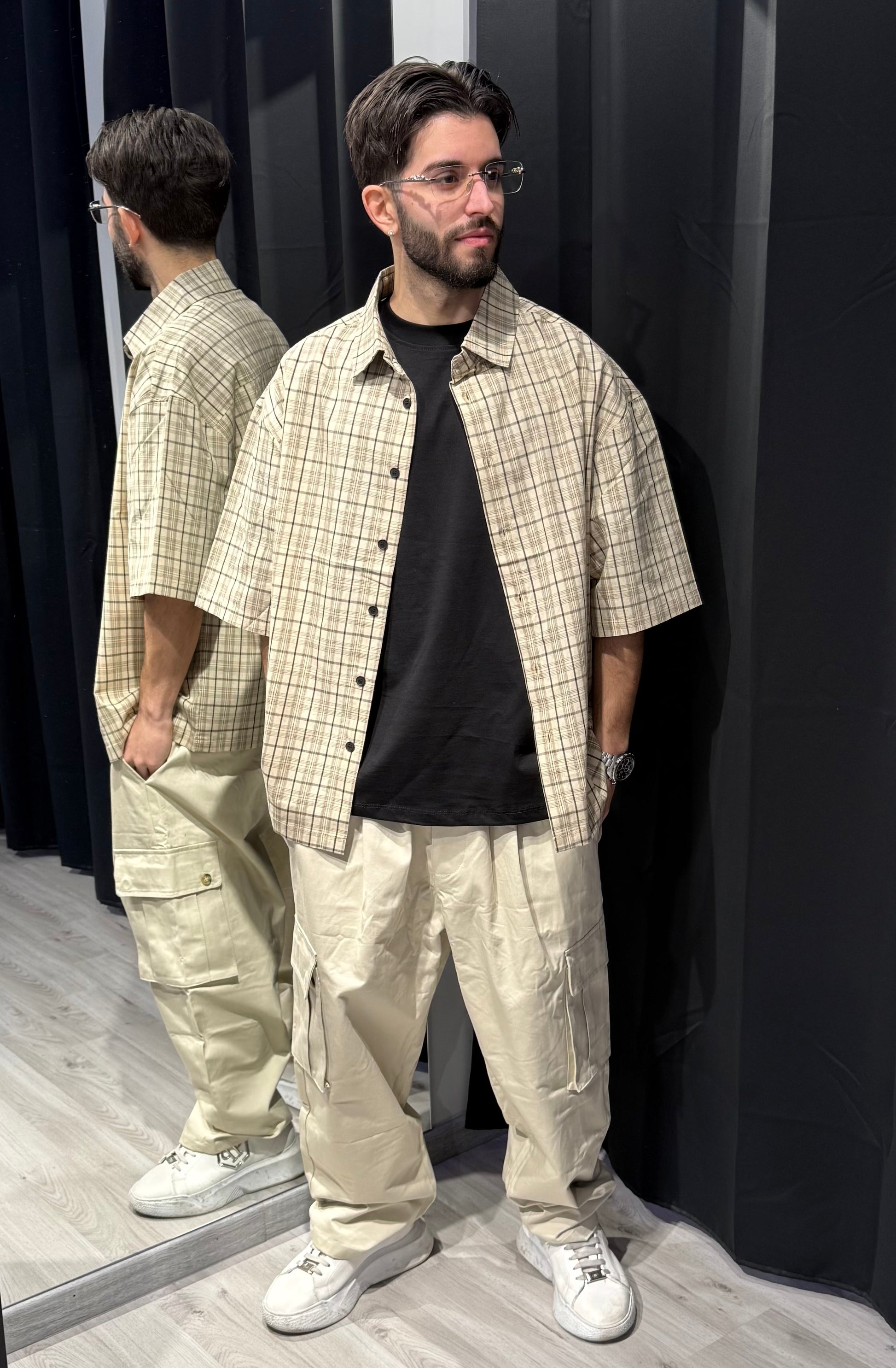 Camicia boxy a quadri a maniche corte, perfetta per la stagione primaverile. Realizzata in tessuto leggero e traspirante, offre una vestibilità ampia che garantisce comfort e libertà di movimento durante tutta la giornata.