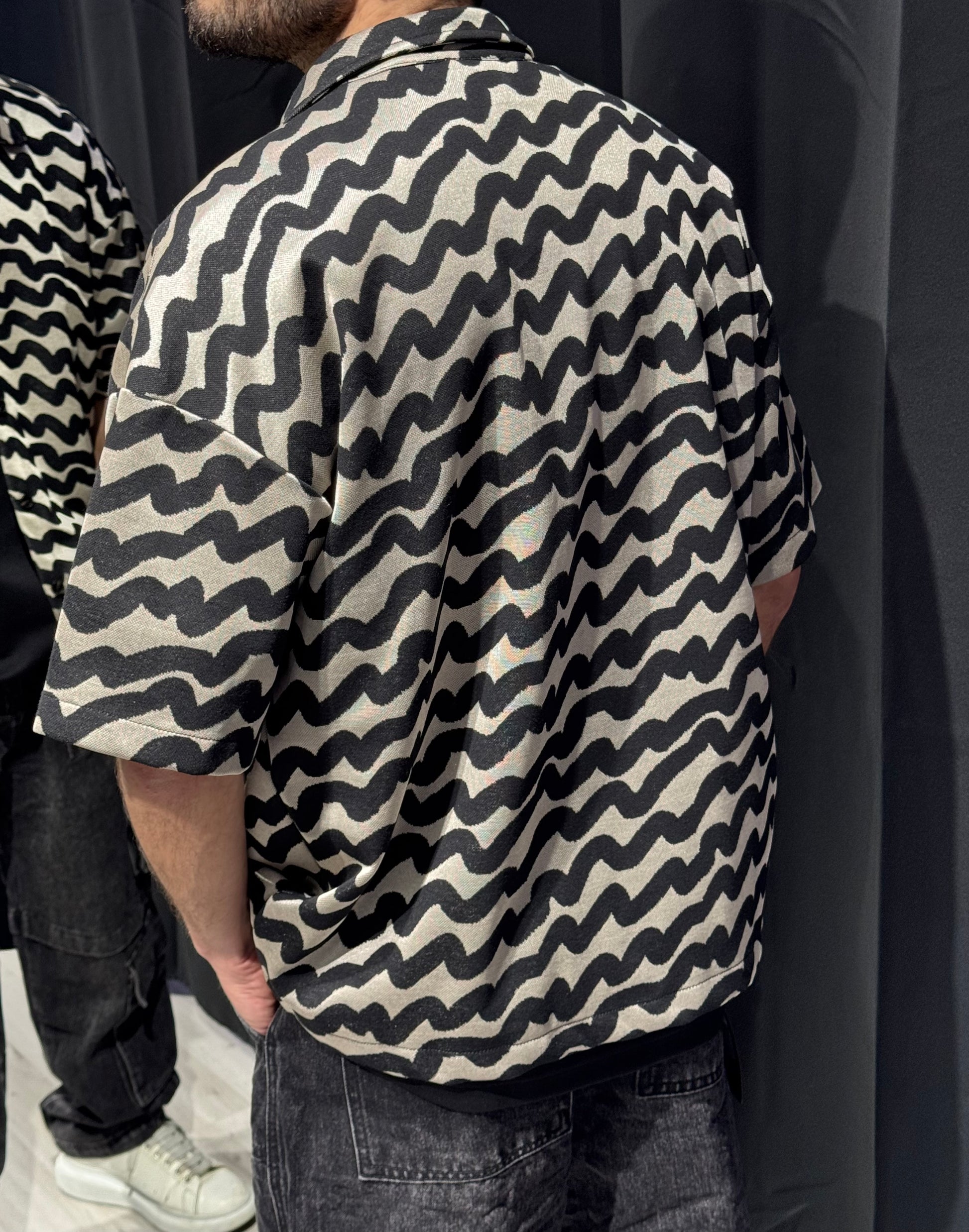 Camicia dal fit semi over, arricchita da dettagli ondulati e irregolari lungo il tessuto.