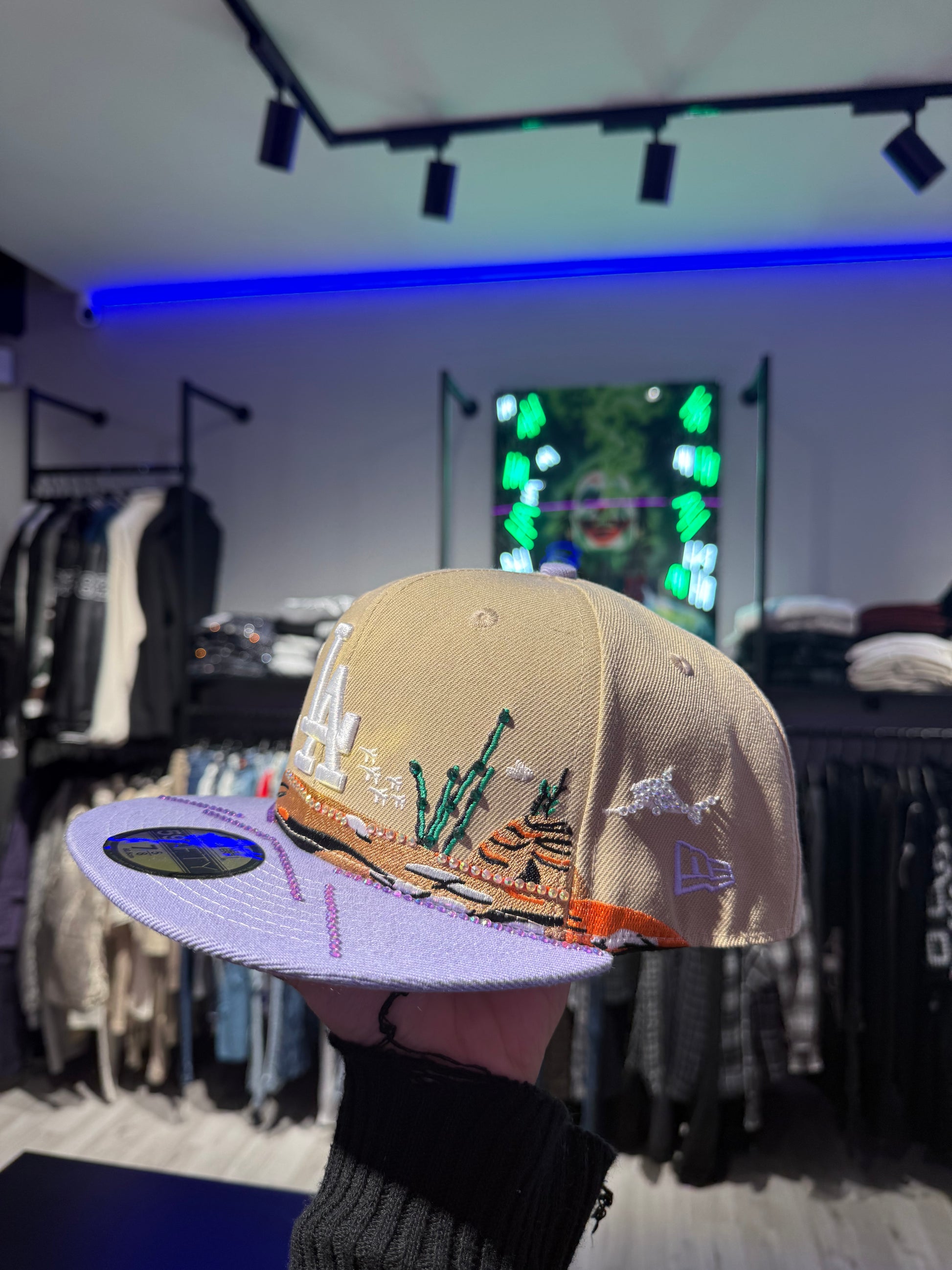 Dai un tocco di stile unico alle tue giornate estive con il Beach Tide Custom Cap. La base beige sabbia si unisce ai dettagli viola per un look fresco e distintivo.