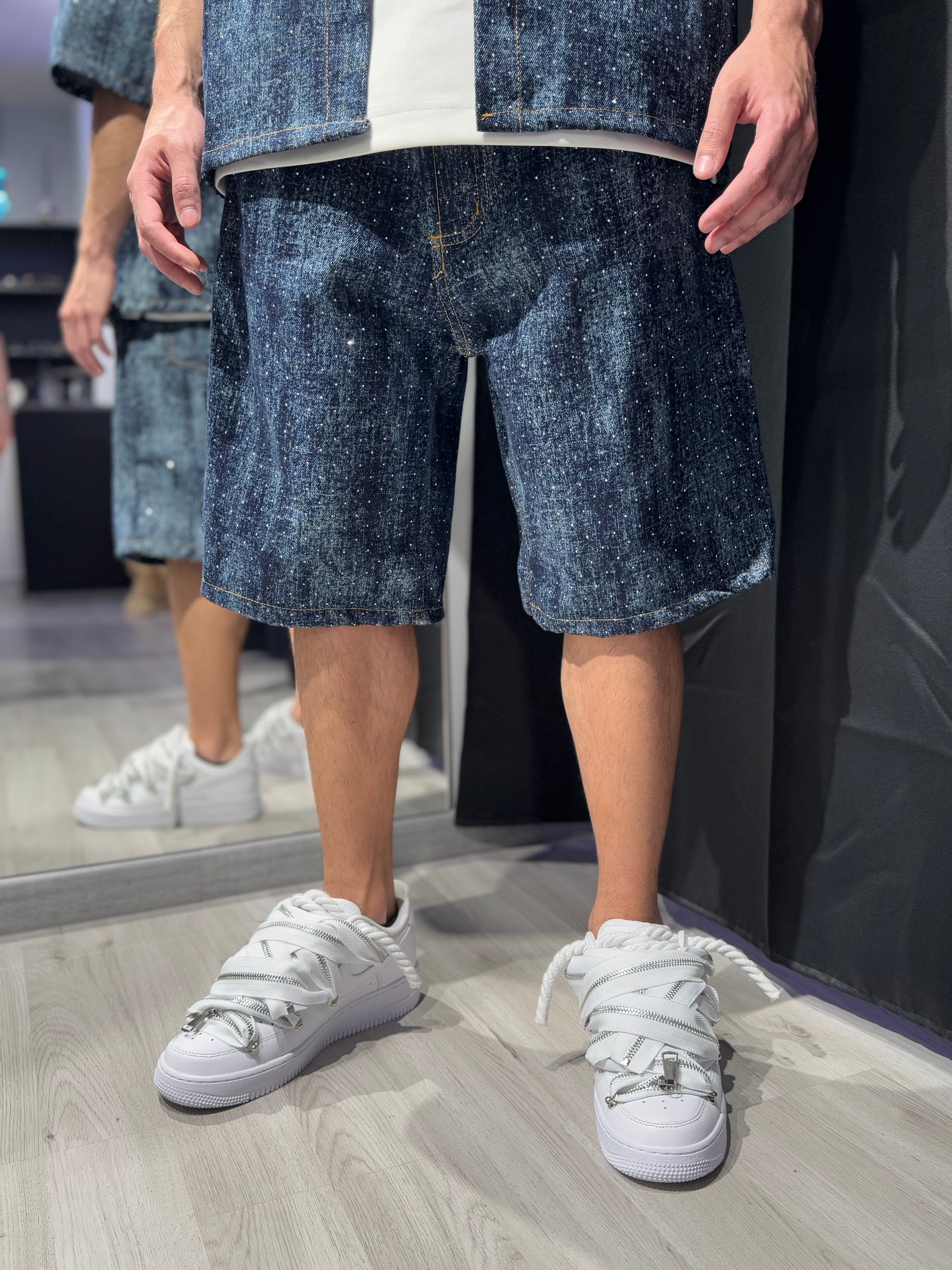 Coordinato in denim brillantinato. Aggiungi un tocco di stile e di praticità al tuo guardaroba, se vuoi farti notare è il coordinato perfetto.