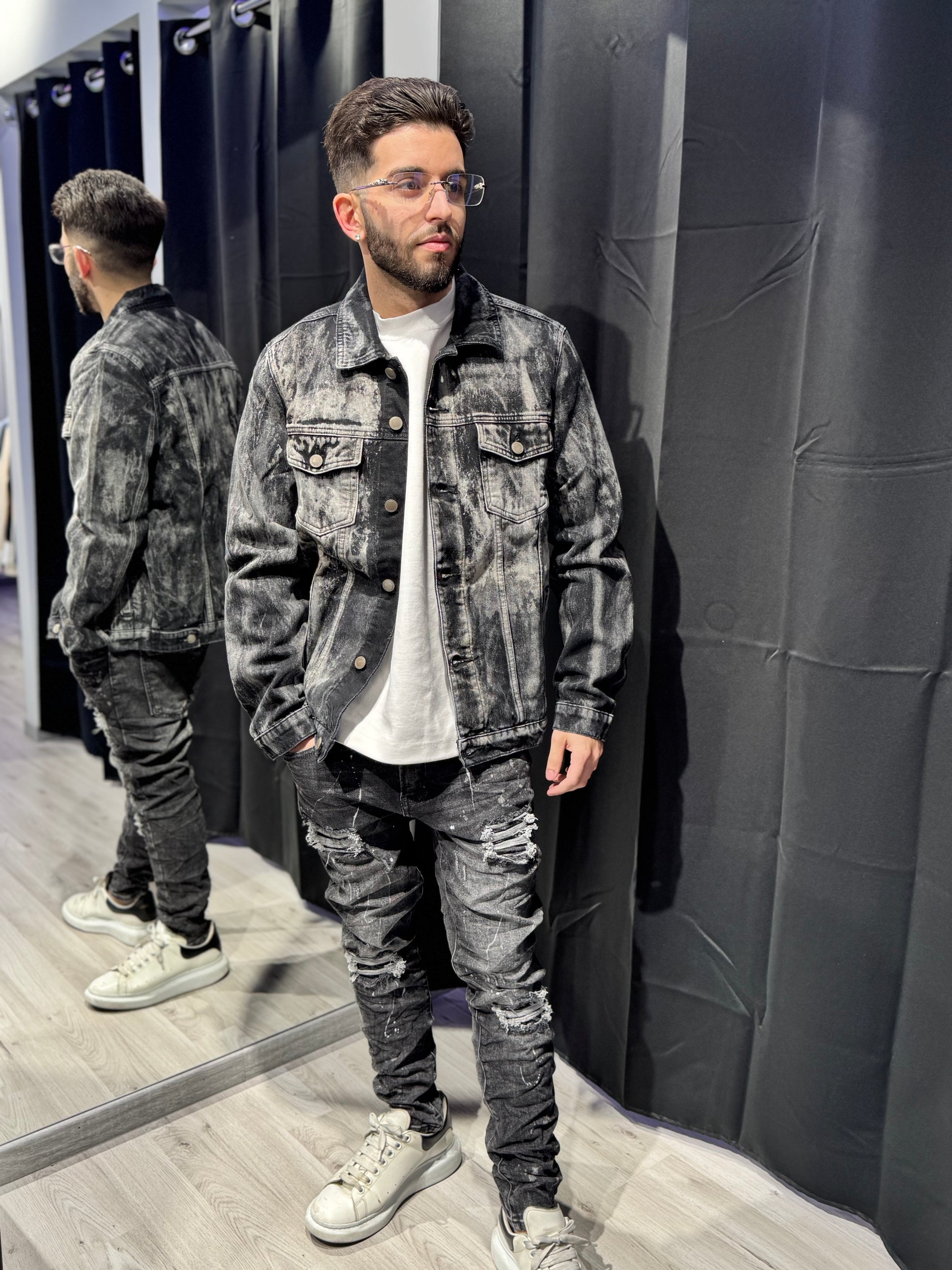 Una giacca dal look leggermente slavato, pensata per chi ama i dettagli autentici e mai banali. Ogni sfumatura regala un effetto vissuto e originale, rendendo questo capo davvero unico nel suo genere.