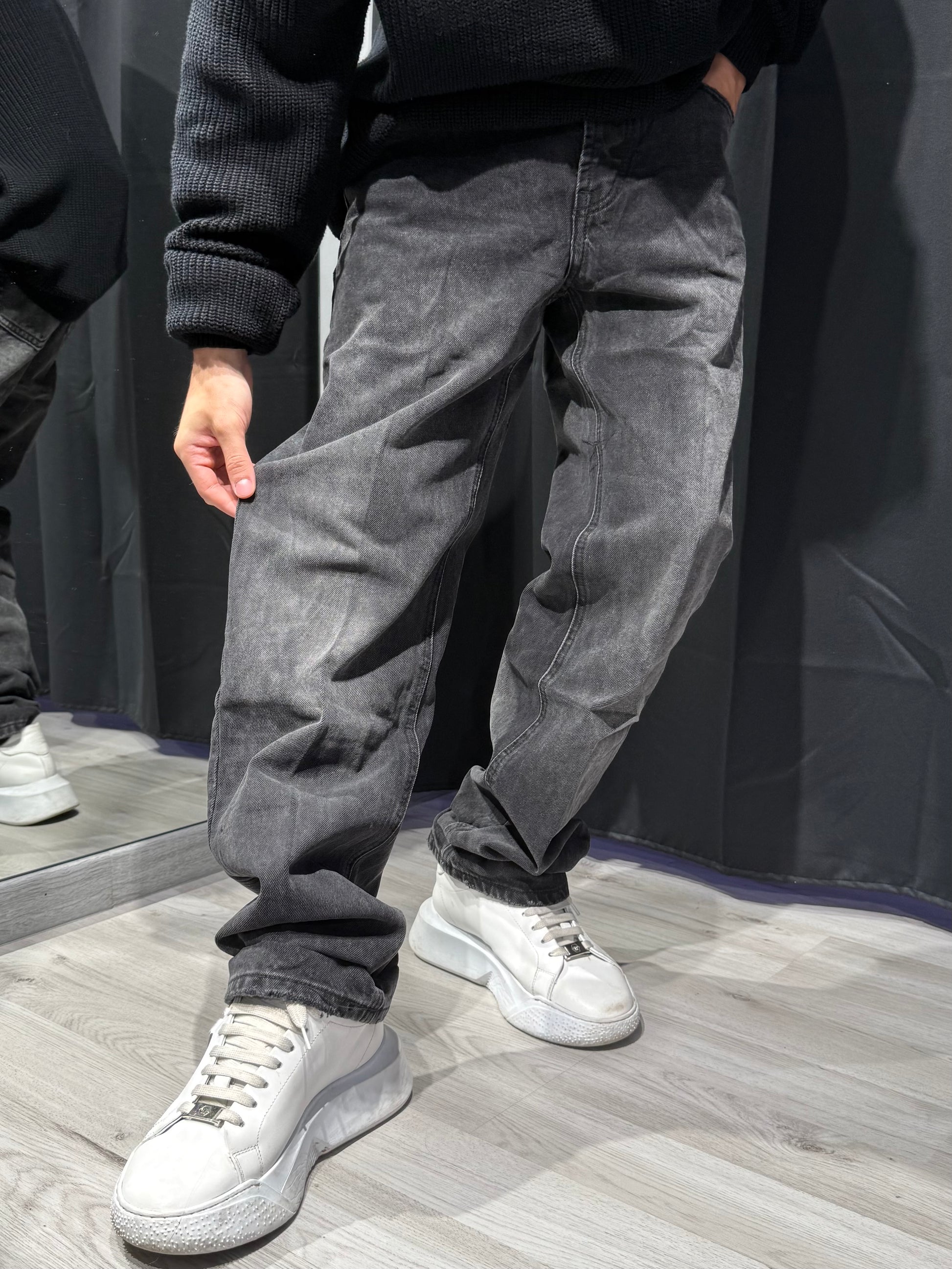 Jeans baggy fit con una sfumatura centrale che dona un effetto washed unico e ricercato. Realizzato in denim resistente ma morbido al tatto, mantiene una vestibilità ampia e comoda, perfetta per un look street moderno.