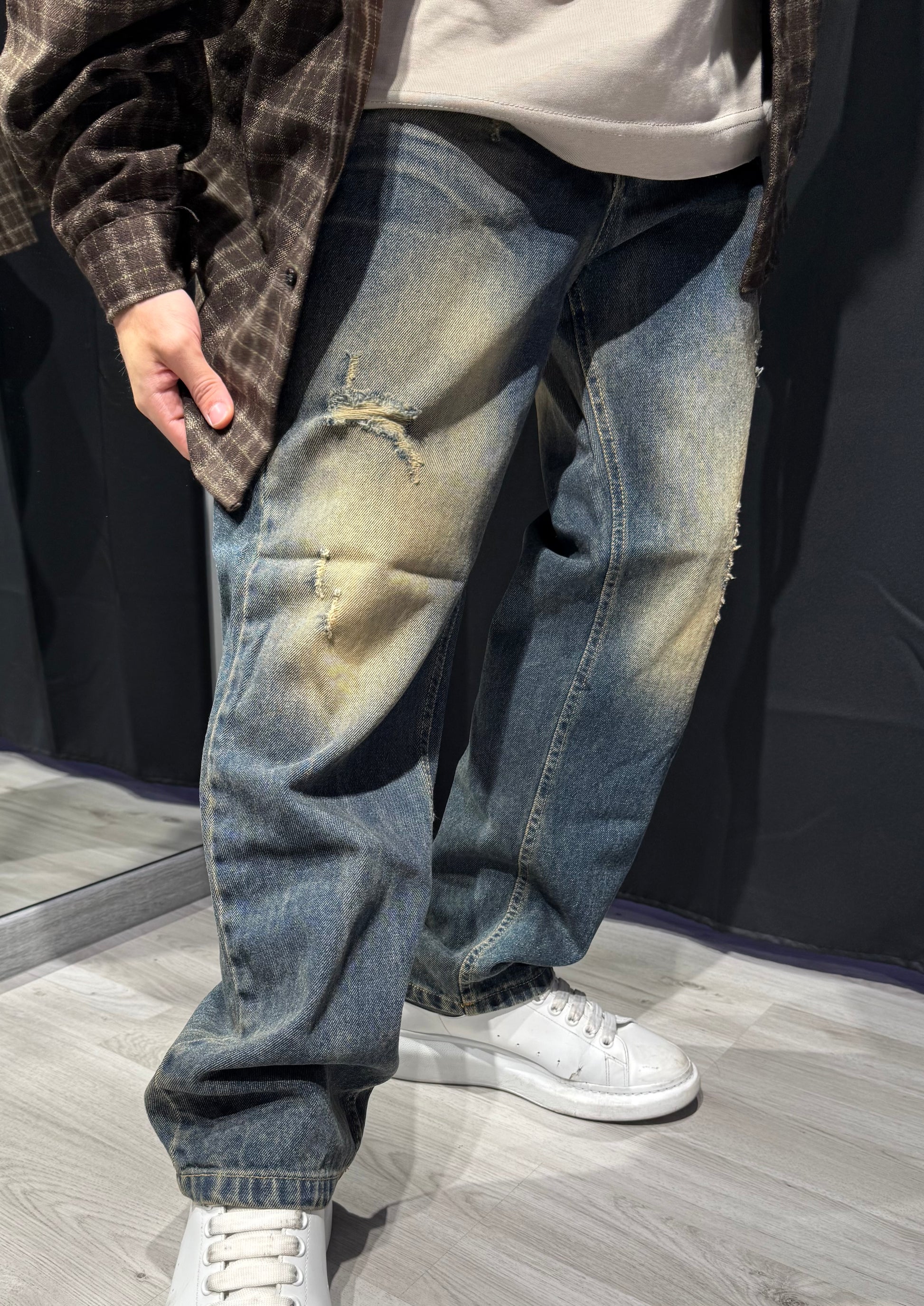 Jeans semi baggy fit con uno stile ricercato e dettagli unici.
