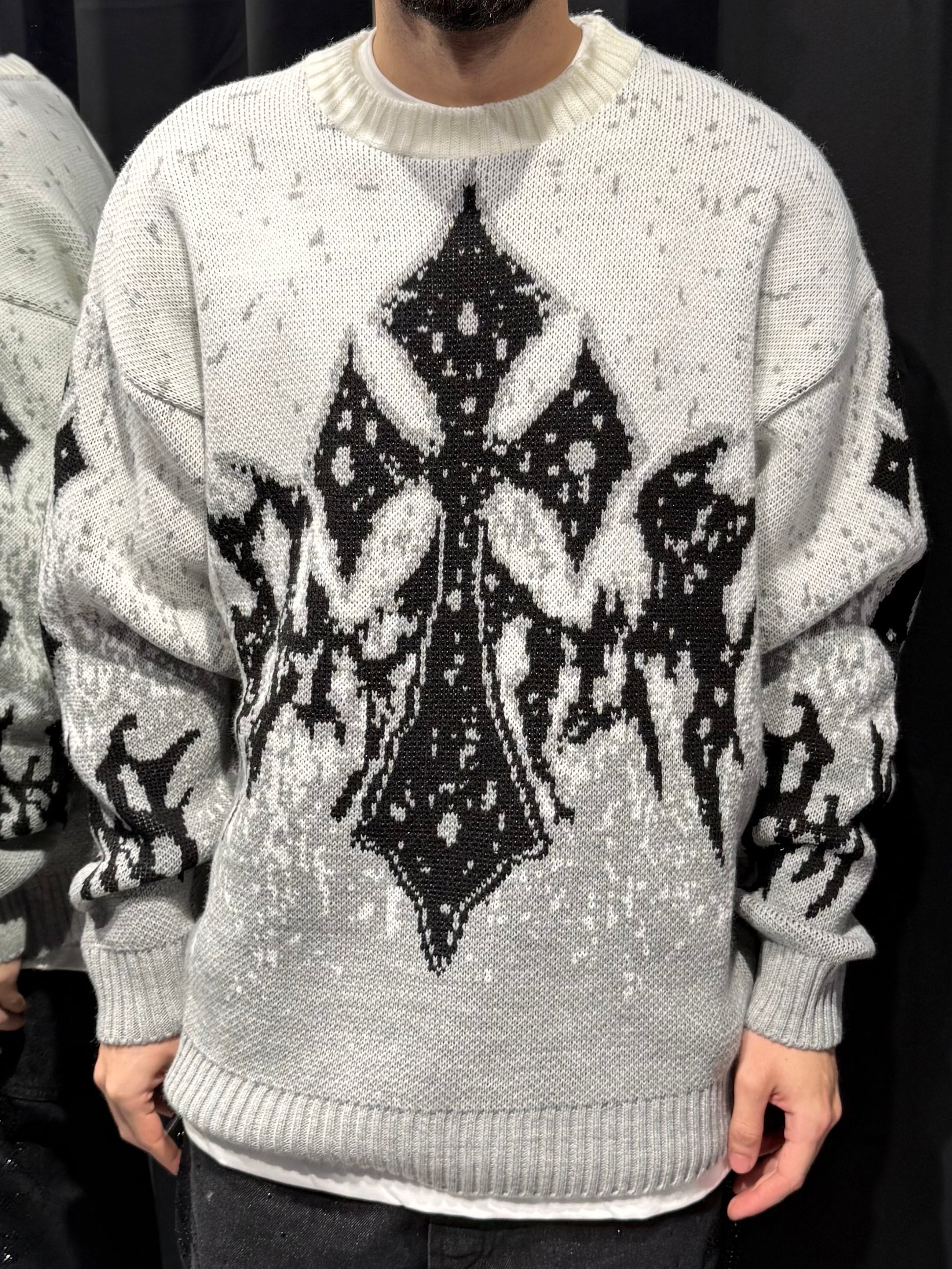 Maglione dal fit oversize pensato per chi vuole distinguersi senza sforzo. Il design con incrocio frontale aggiunge carattere e movimento al capo, mentre le maniche arricchite da dettagli particolari elevano lo stile con un tocco ricercato e contemporaneo.
