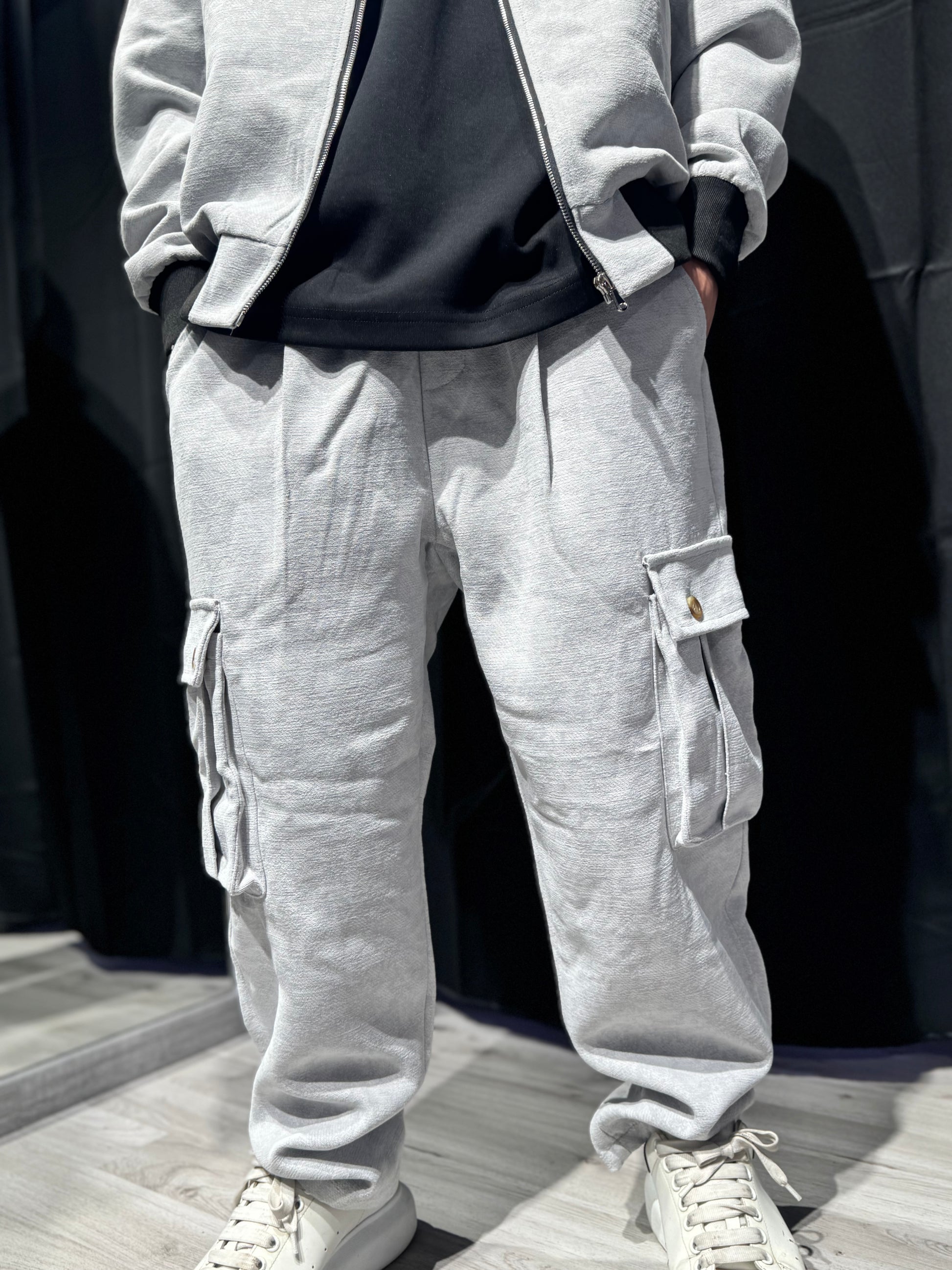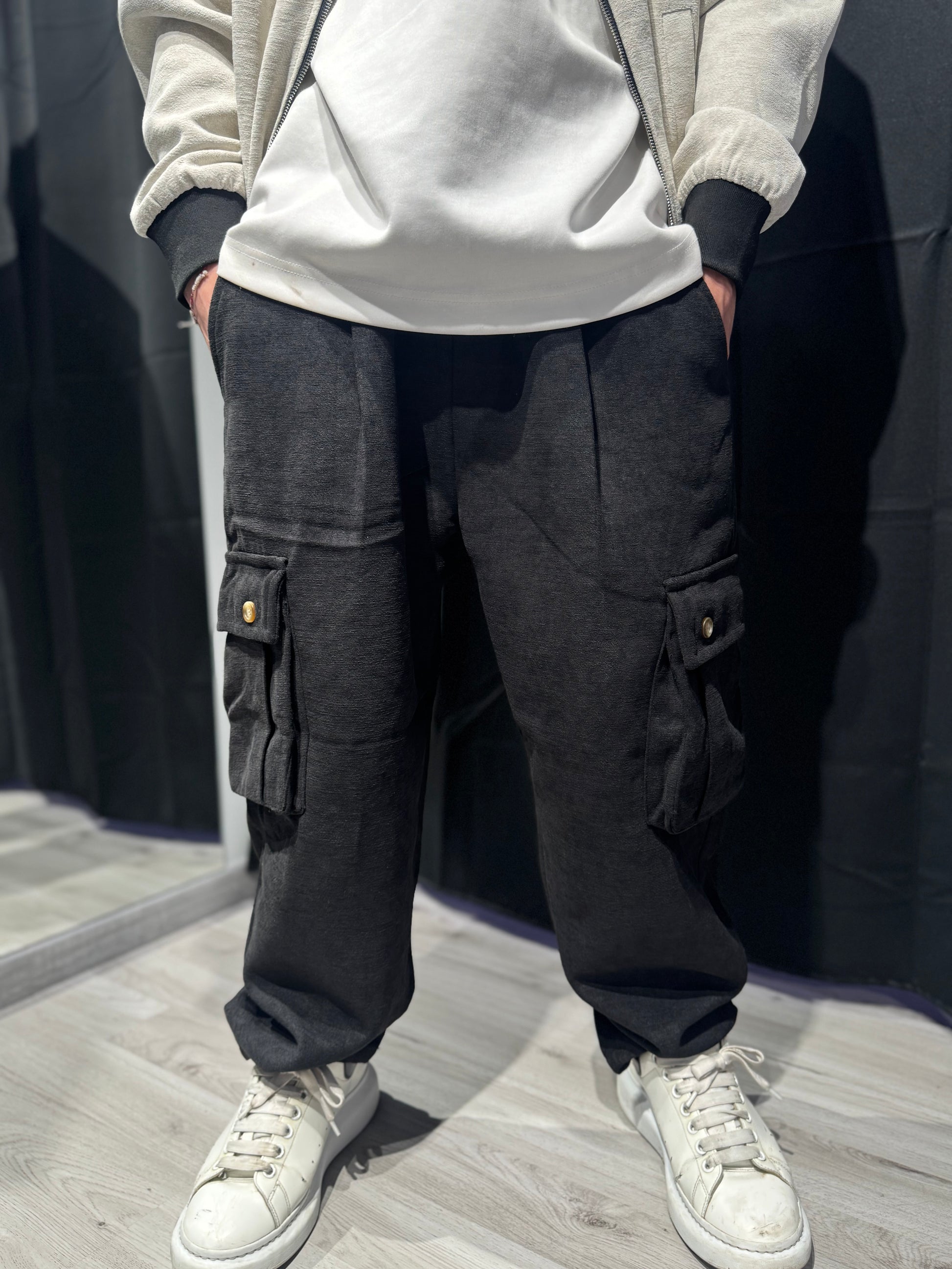 Un mix perfetto tra comfort della tuta e stile utility del cargo. Questo pantalone unisce il fit rilassato e morbido tipico dei jogger con le tasche laterali cargo, che aggiungono carattere e funzionalità.