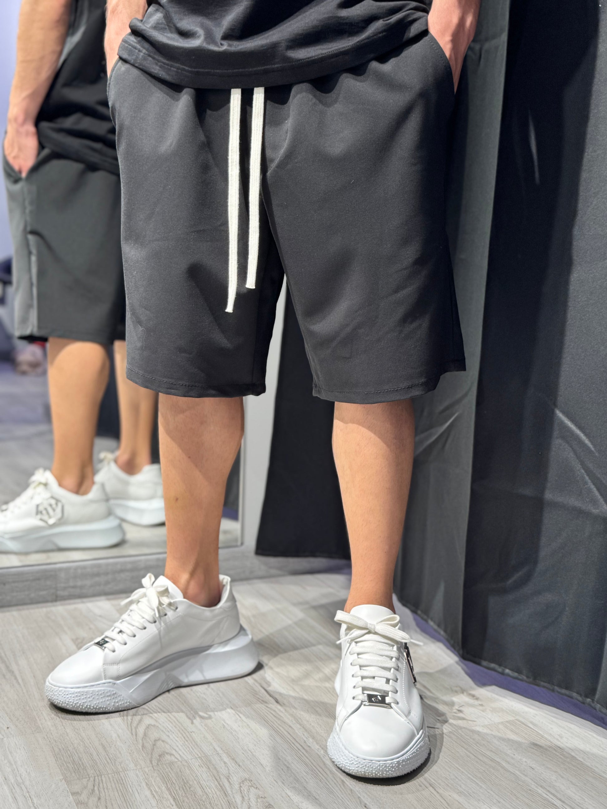 Pantaloncino dal taglio classico, con vita elasticizzata e laccio regolabile.