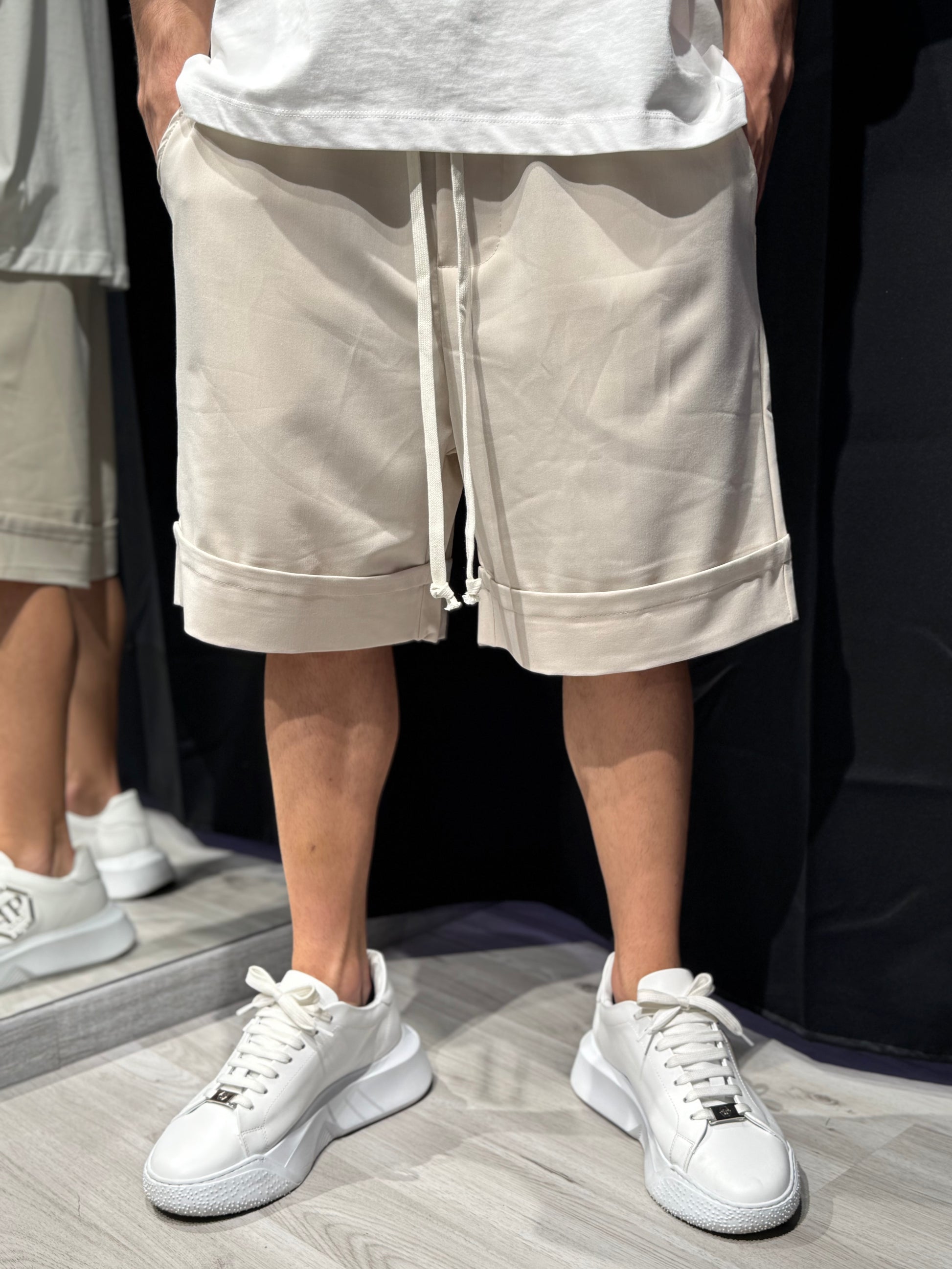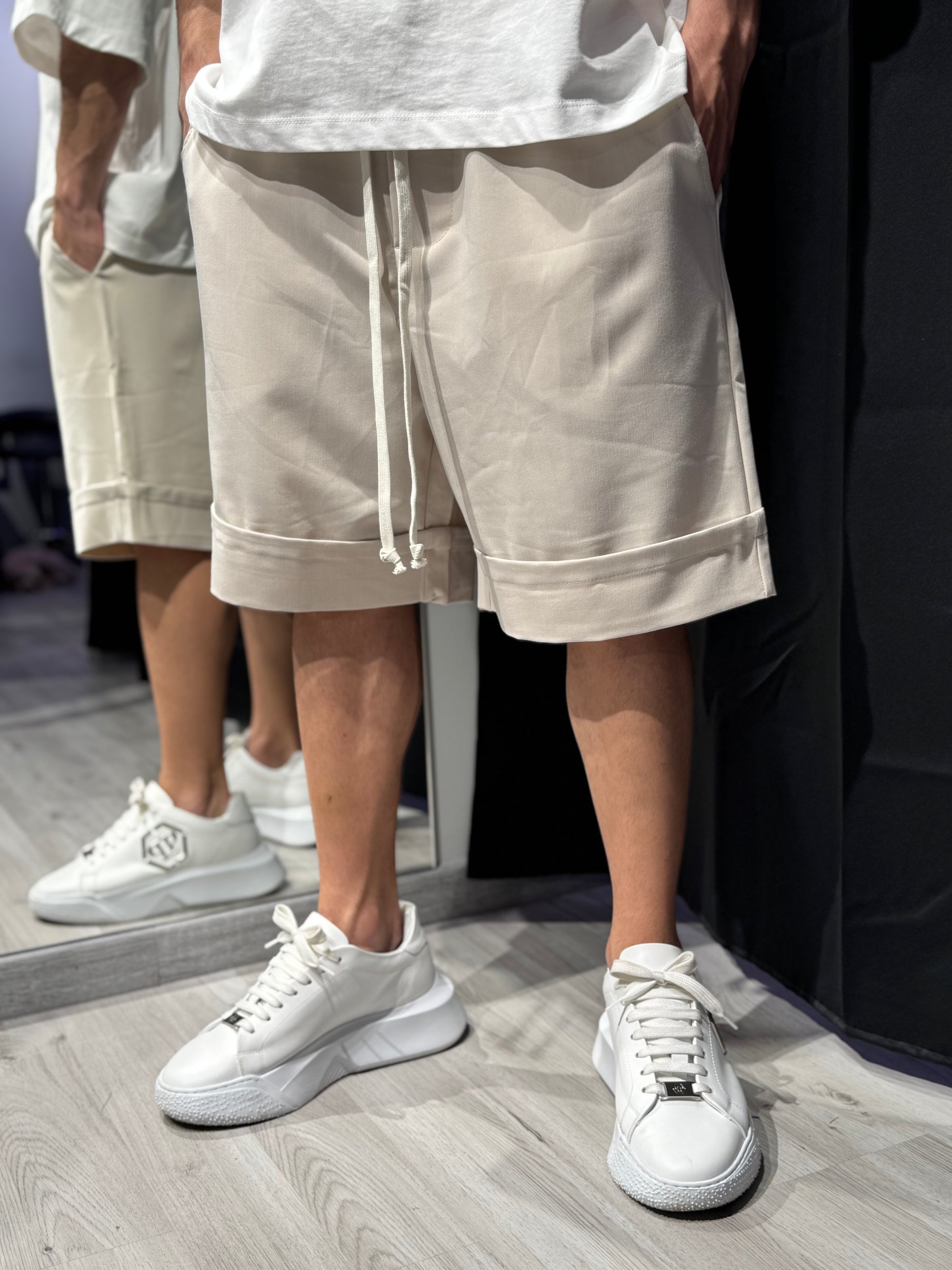 L’essenza dello stile pulito: questi pantaloncini uniscono la comodità di un capo sportivo alla cura di un dettaglio elegante, come il risvolto finale.